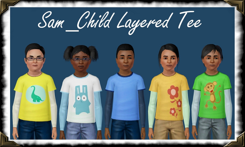 Done by request in the TSR Forums. A conversion of the toddler layered tee for children, both boys and girls. Includes all 5 variations shown above. 3 recolorable palettes.
