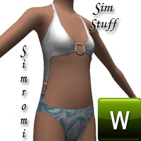 Tired of loosing the top or bottom of you bikini? Well here is the solution, this one piece bikini. That's right folks, a one piece bikini. Looks like a bikini from the front and back but check out the sides! Top and bottom sections are recolorable. I hope your teen sim enjoys wearing this bikini at the pool or beach.