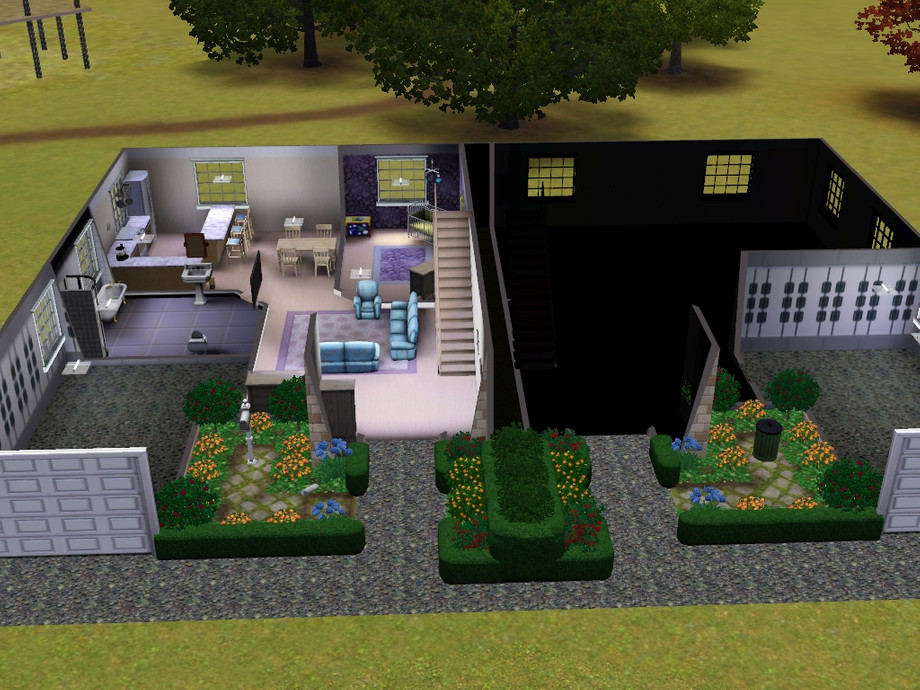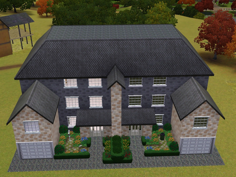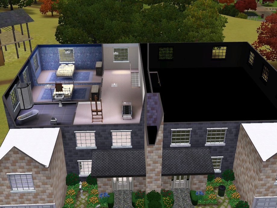 3 story Halfhouse,1 babyroom, 2 singlebed rooms (2 beds each), 2 master bedrooms (1 doublebed each), 3 bathrooms, 2 usable garages. If u Upload this house in ur world or so plz give me credits. Creaded by JazUnknown CC: Pattern. Credits go to Pralinesims for her cute pattern
