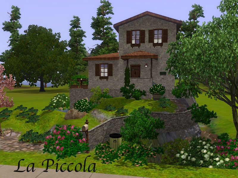 On a little hill at the edge of a pond you'll find La Piccola. A lovely little couple starter home. A perfect place to start the adventure of a life together. There is no cc in this creation.