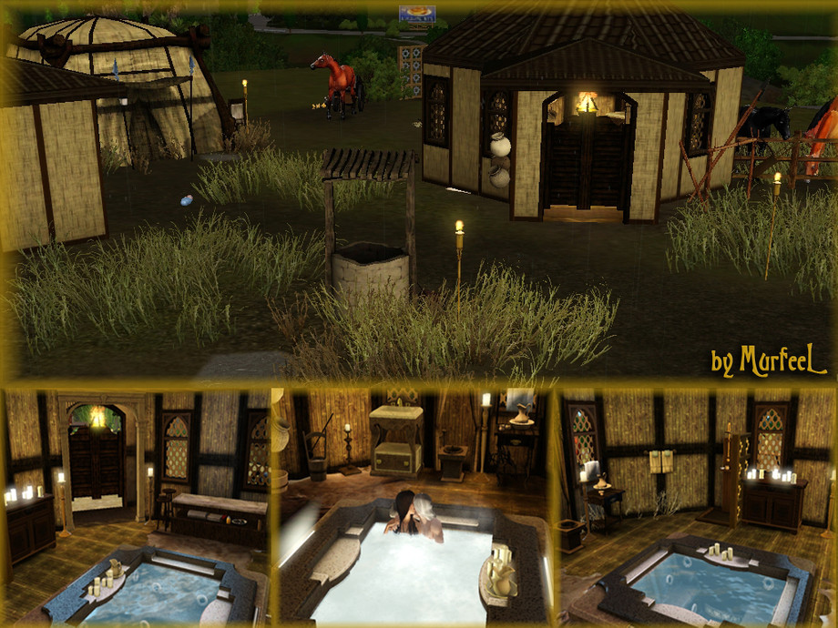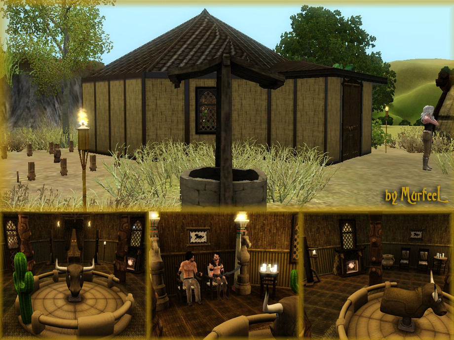 Made with update 1.50 and the WA, AMB, LN, SHT, SN and SSNS EPs only -- no SPs required. Install the Extra CC Not Included that I linked to above in your Packages folder FIRST, or the lot will NOT install! ALL EA Store Worlds installed, but particularly uses CC from Riverview (free), Lucky Palms (gold), Sunlit Tides (gold), and Monte Vista (gold). Uses CC from the following Store sets: Waning Moon (Woven Blanket Chair, Pueblo Bed, Black Horse's Song, Teepee Chair, Dream Snare) ; Indian Insp (Decorative Arga Jars, Hookah Sculpture, Glowing Arches Wall Light) ; Cambodian Insp (Going, Going Gong, Royal Treatment Sink, Towel Rack, Bathtub) ; Tiki Sets (Lanai Privacy Screen, Vic's Doors) ; Safari Living (Vuvuzela Telescope, Supreme Fireplace) ; Japanese Insp/Zen Again (Never-Spill Bucket, Unquenchable Thirst Water Bucket, Harmonious Trio Floor Baskets, Alchemy End Table) ; Vineyard Vittles (Vineyard Vittles Shelf, Cast Iron Cookery) ; Don Pedro Dresser, Gothique Skull Chest, Head of the Table Chair, Advantageous Washstand, Desert Designs Coffee Table. Extra CC from ATS3, Victor_Tor, SydneyGrey, Luna and Jennisims. Don't re-upload as own creation