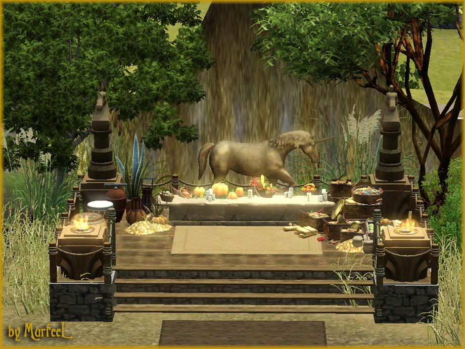 I don't think I used Granthe's OMSP this time (for once, right!? Lol!) You like the big horses? You like how similar it looks to the TV series? Well then you need Buhudain's OMSP resizer, and that's ALL there is to it! XP It's just a WA end table and the horse statue by Lisa9999 available here at TSR--I plopped them all down on x4 resizers and viola~! :D Instant Dothraki animal worship! ^0^