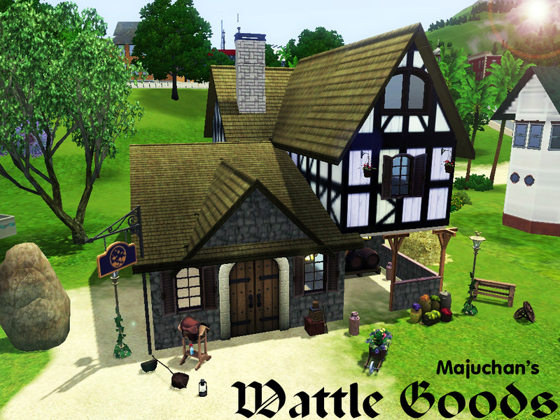 Sims 3 — Wattle Goods ~ No CC by Majuchan — A medieval shop inspired consignment store. Thou hath a lot of money? or have