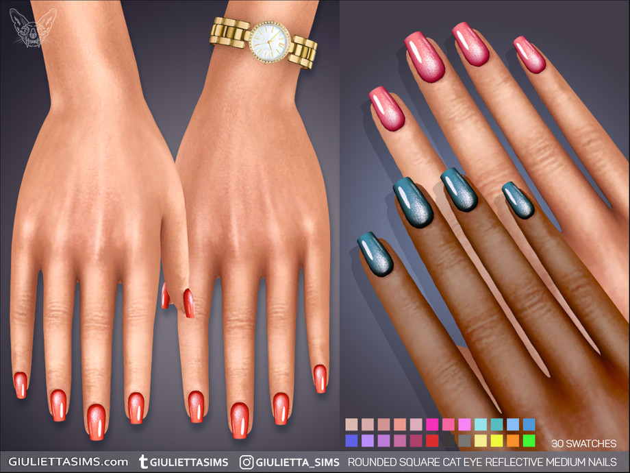 Rounded Square Cat Eye Reflection Medium Nails come with 30 swatches. These nails won't conflict with rings.