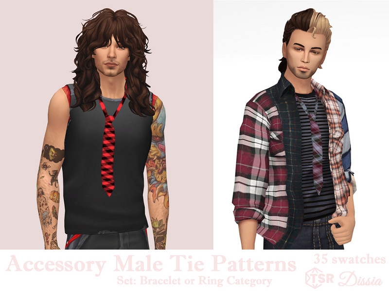 Sims 4 — Accessory Tie Male Patterns (Bracelet Category) by Dissia — A patterned loose tie for male
