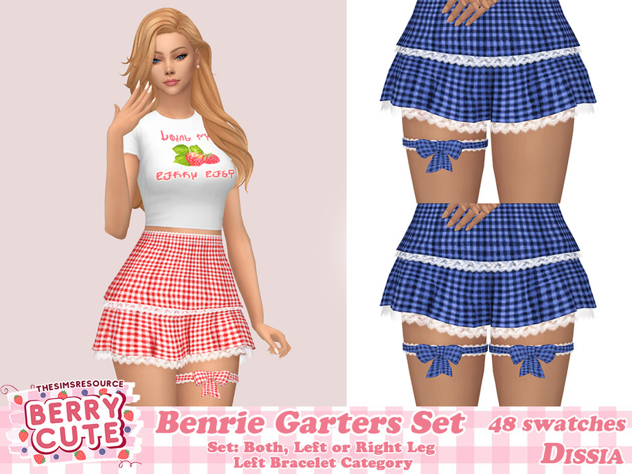 Cute plaid gingham garter with bow and white lace for left, right or both legs