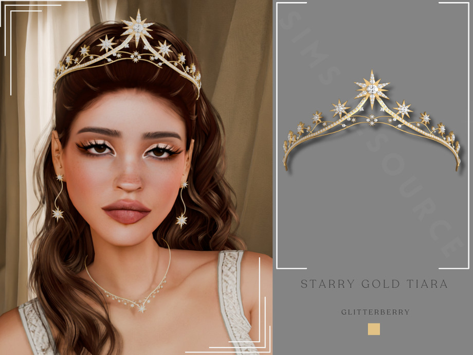 A gold tiara with star motifs and diamonds