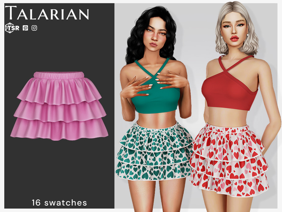 Cute layered mini skirt featuring tiered ruffles and a playful heart print. The soft, flowy texture adds movement and charm, making it ideal for sweet casual outfits or romantic summer looks