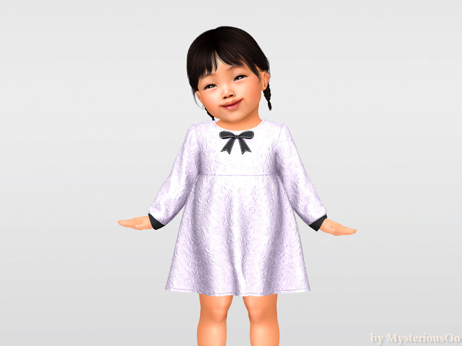 Textured infant dress with long sleeves and bow
