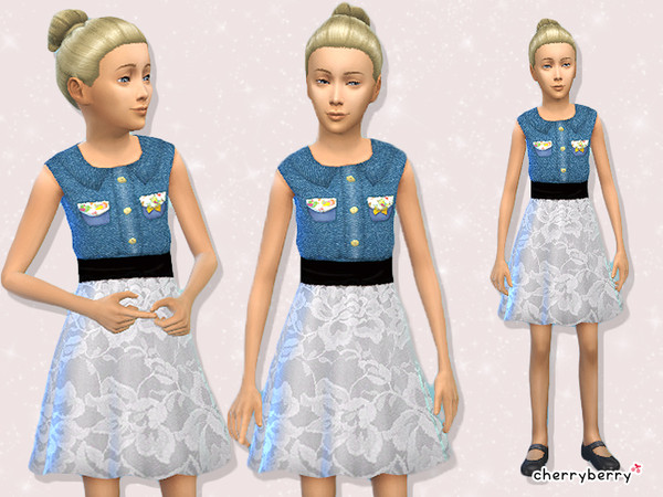 Stylish denim mini dress with straps for female sims. Has one version with white gradient/acid wash.
