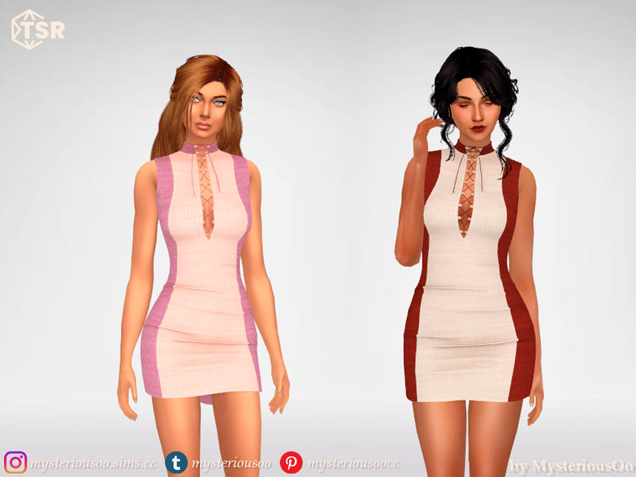 Two-color lace-up dress in 9 colors