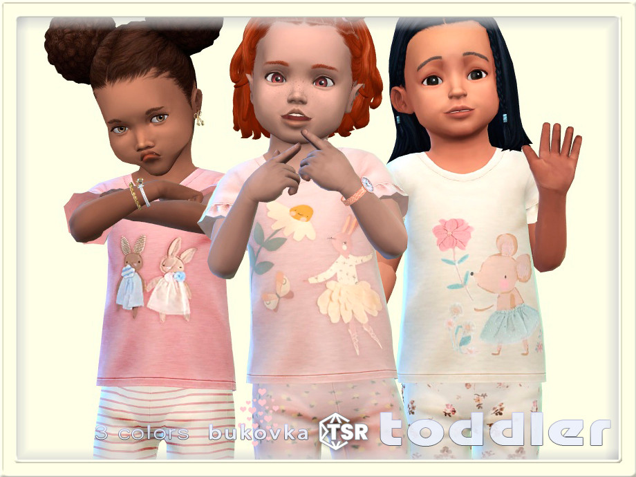 Cute T-shirt for toddlers only girls in 3 color options. New mesh mine, included. Installed separately, all cards are modified, suitable for the basic game.