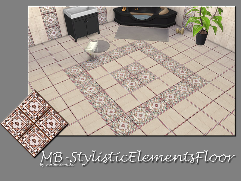 MB-TrendyTileStylisticElementsFloor, classy and elegant ceramic tile floor with decorative tile , matching the - MB-TrendyTileStylisticElements walls and floors -, comes in 2 colors , with custom thumbnail, created for Sims 4, by matomibotaki.