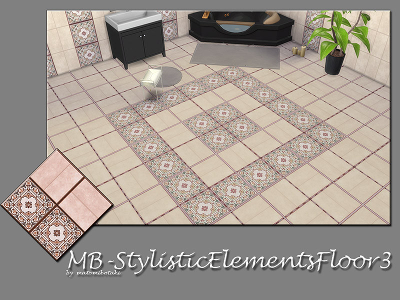 MB-TrendyTileStylisticElementsFloor3, classy and elegant ceramic tile floor with partly with decorative tile , matching the - MB-TrendyTileStylisticElements walls and floors -, comes in 2 colors , with custom thumbnail, created for Sims 4, by matomibotaki.