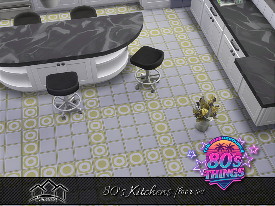 80's an increase decorative ceramic tiles with artistic motifs and geometric patterns that add a cheerful nostalgic touch to kitchens walls and floors.(floor set)