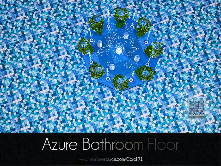 A single recolour tiled wall in aqua tones and various shades of blue. Primarily designed for indoor/outdoor bathroom use, but it also will compliment any blue-toned kitchens or swimming pools.