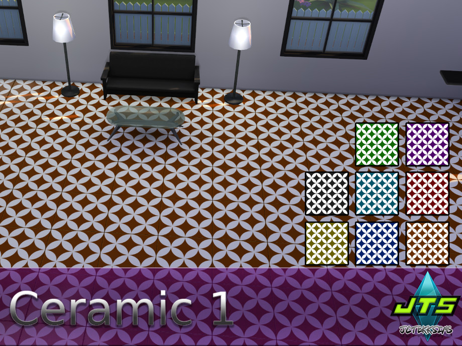 Ceramic tile flooring. Comes with 8 color swatches.