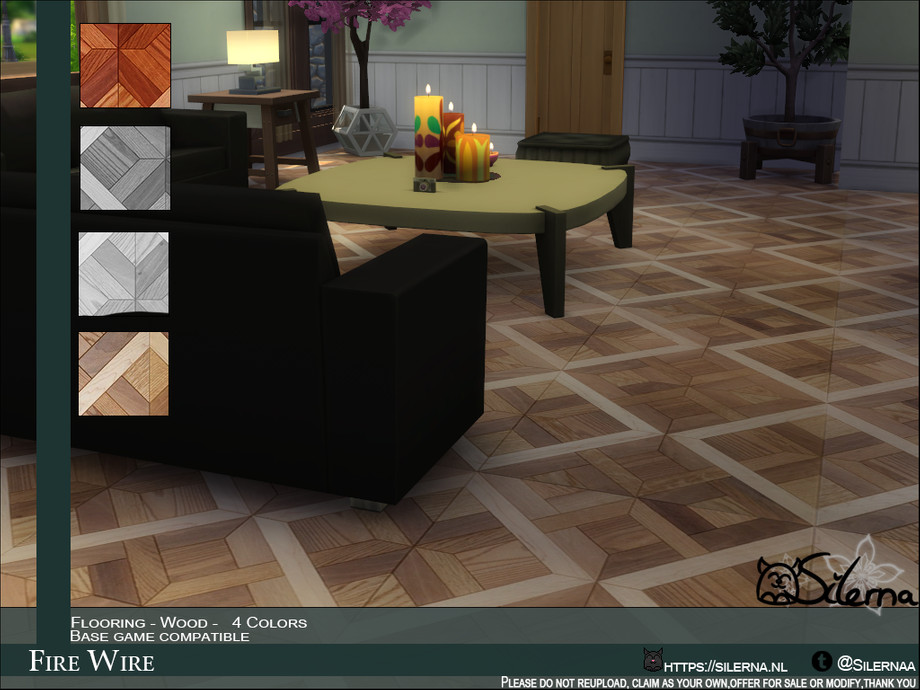 Sims 4 — Fire Wire by Silerna — Amazing wooden tiles for in the house and outside. 4 doifferent colors, Sims 4 only.