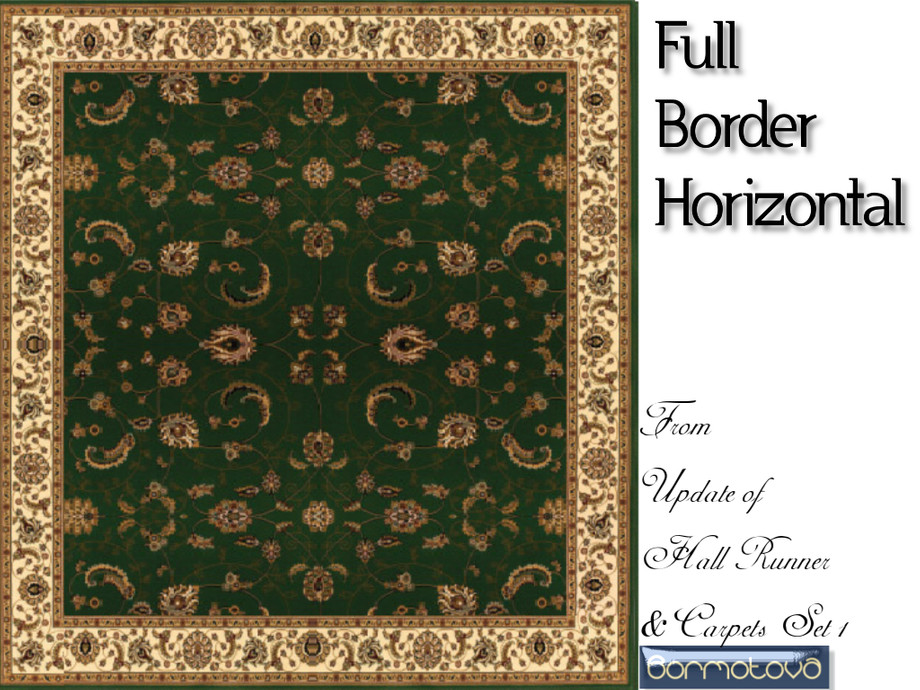From Hall Runner and Carpet Set 1 UPDATE, will not be inline with the original. This set includes the horizontal placement of the carpet with hall runner, corners and sides also no border (for fill) and full border. There are 11 floors in each part 1 of the set.