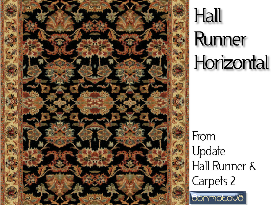This is part 1 (horizontally laid) of Update of Hall Runner and Carpets Set 2. I have broken this set in two, as it became quite large. This part has 11 carpets needed for creating a room border. Consists of corners, side borders no border, full border and hall runner.