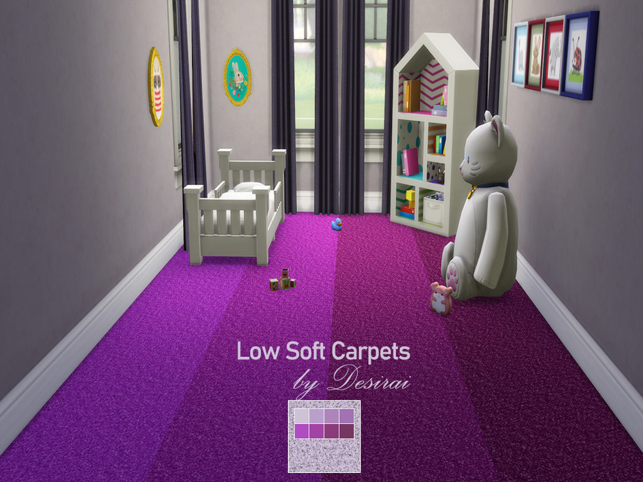 8 swatches of purple low carpets.