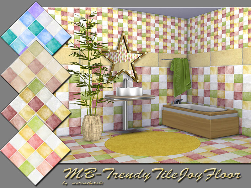 MB-TrendyTileJoyFloor, modern and stylish floor tile in intesive colors, comes in 4 different color shades, and custom thumbnail, matching the - TrendyTileJoy - , created for Sims 4, by matomibotaki.