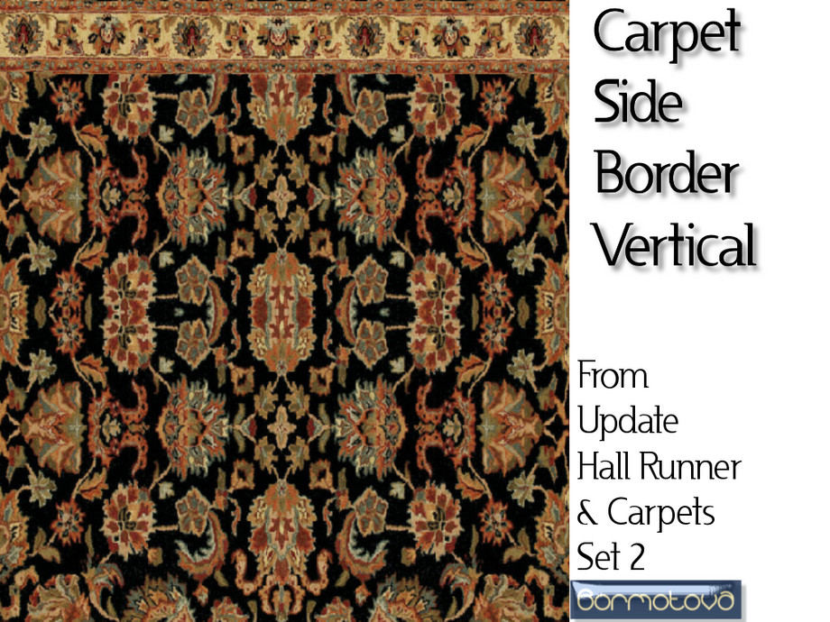 This is part 1 (horizontally laid) of Update of Hall Runner and Carpets Set 2. I have broken this set in two, as it became quite large. This part has 11 carpets needed for creating a room border. Consists of corners, side borders no border, full border and hall runner.