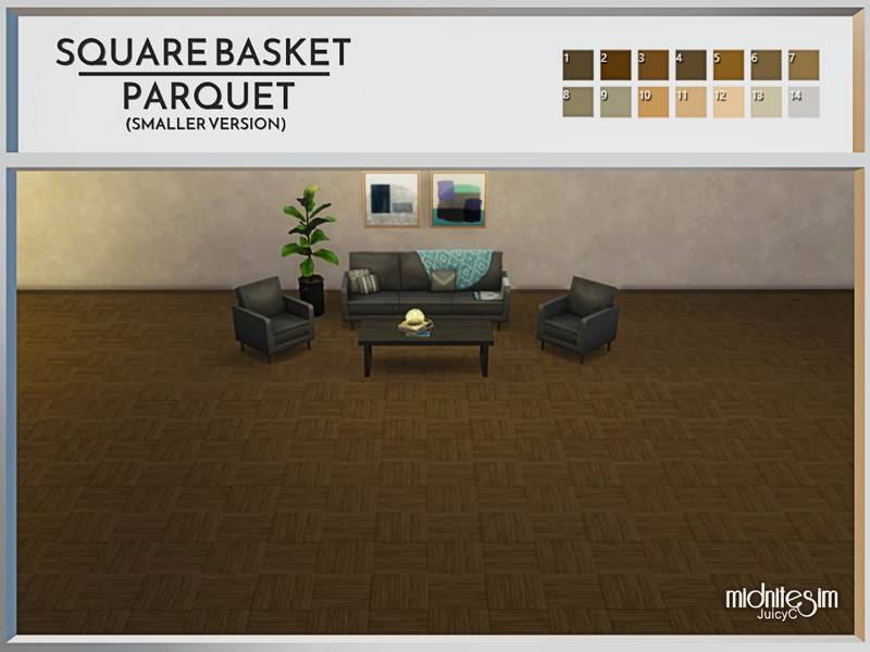 Wooden parquet in the style of a square basket in 14 colour variants.