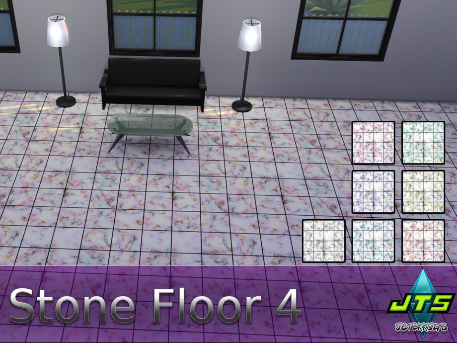 White shiny flooring with colorful tones. Features 7 color swatches.