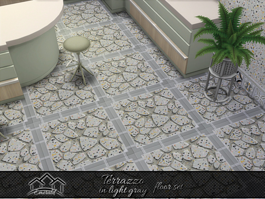 Terrazzo are chips of natural stones, creating everything from bold to monochromatic looks.(floor set)