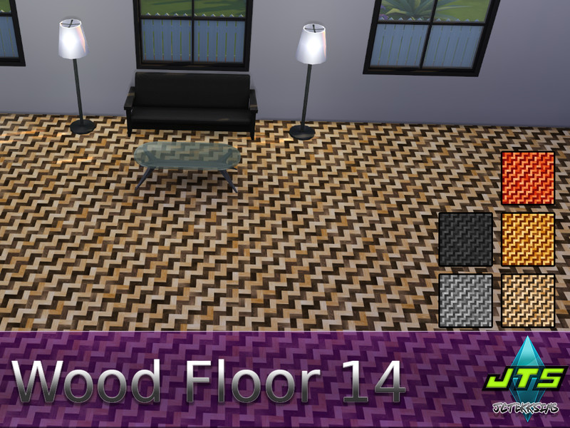 Beautiful zig-zag pattern wood floor with 5 color swatches.