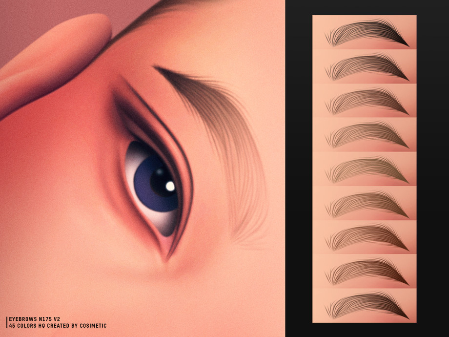 Sims 4 — Bare Shape Brows N175 V2 by cosimetic — A thicker and more textured version of V1 with looser hair strokes.