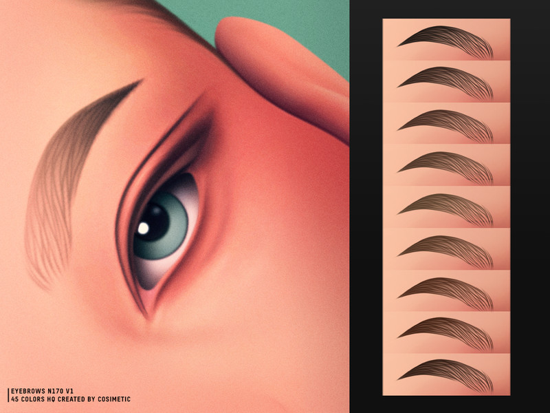 Clean Lift Eyebrows N170 V1 are designed with a gentle lift and controlled hair direction. This shape adds subtle definition while keeping a clean and modern Maxis Mix look. Available in 45 colors.