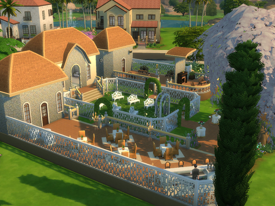 This beautiful wedding venue comprises a wedding arch, seating area, a bar, kitchen and a bathroom. There is also a piano surrounded by a fountain for providing the best entertainment for the perfect day.