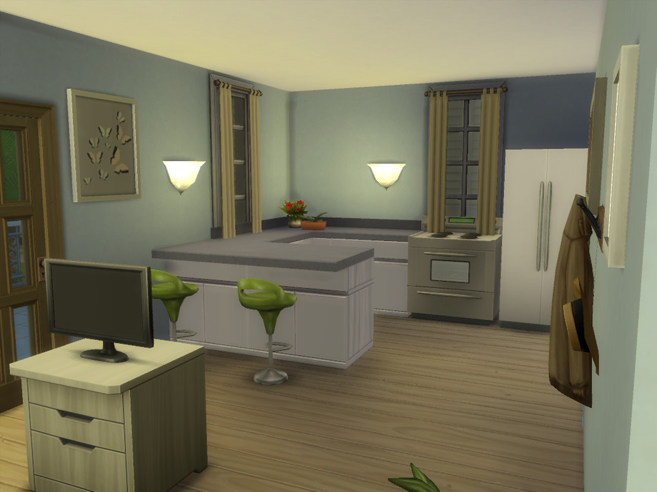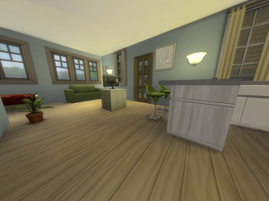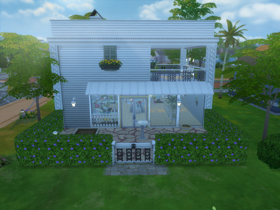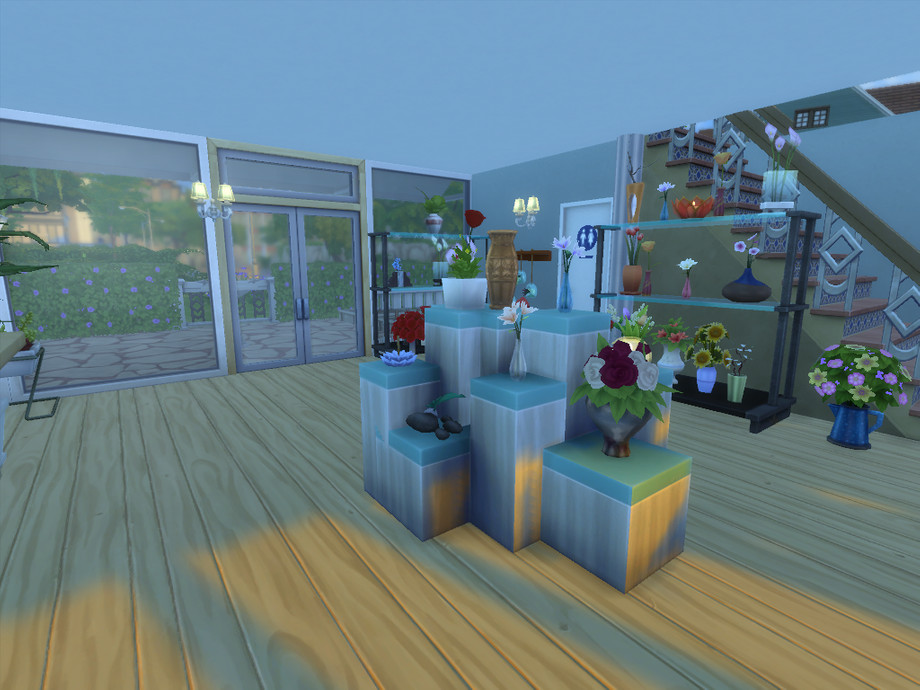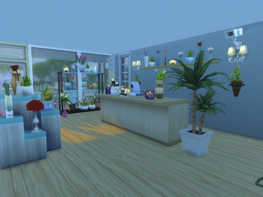 We want to sell many flowers and flora!The shop itself is on the base floor with a toilet. On the first floor a sim can live or where your sim can take a break. A small kitchen with bar , a sofa with tv is there with a bed for naps in the corner. A balcony so your sim can enjoy the outdoors! My own Flower shop! I wanted to share it with you too :).