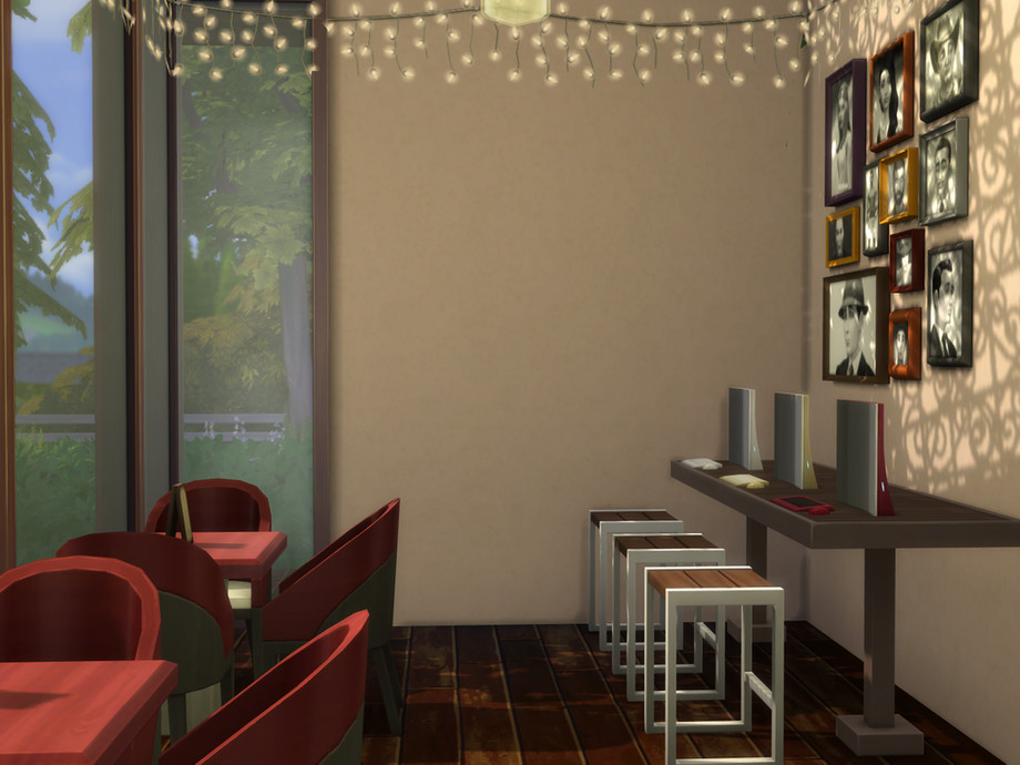 Inspired by outdoor movie nights and combined with the joy of sipping a good coffee, the Cinema Cafe is the perfect place for all your hipster (or not) sims to hang out.