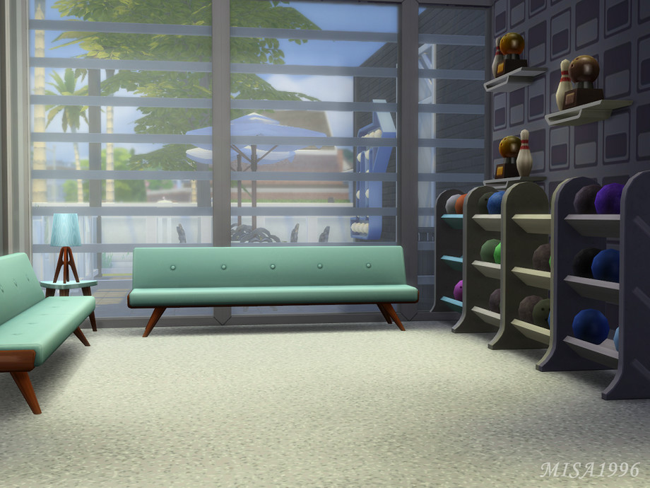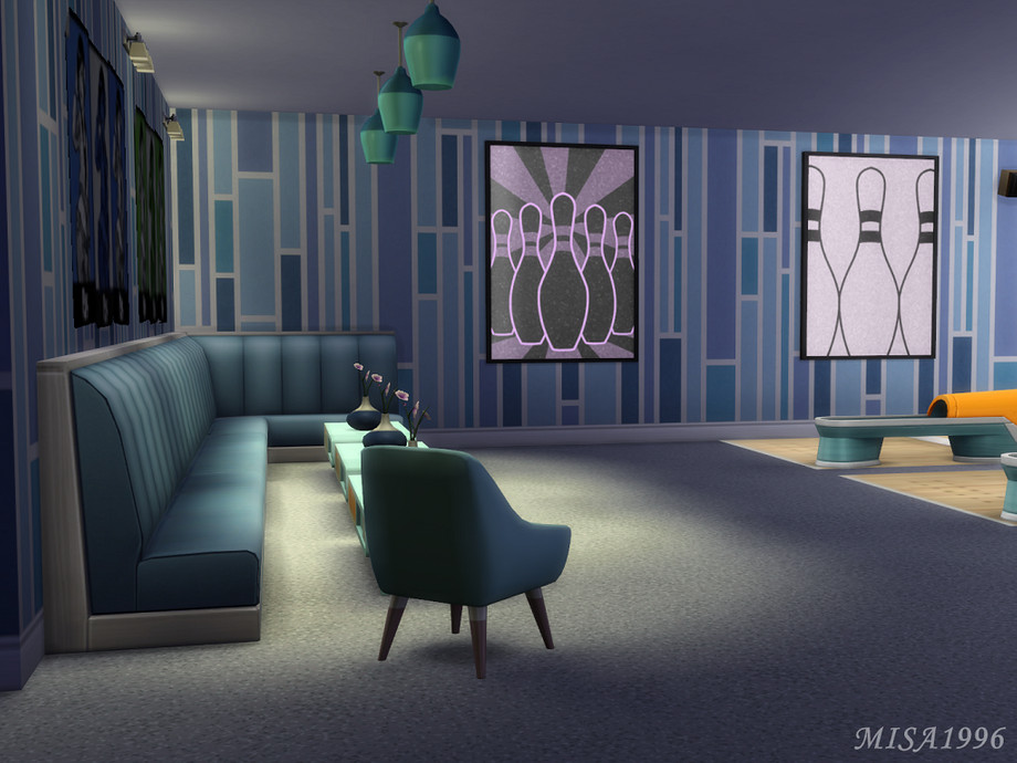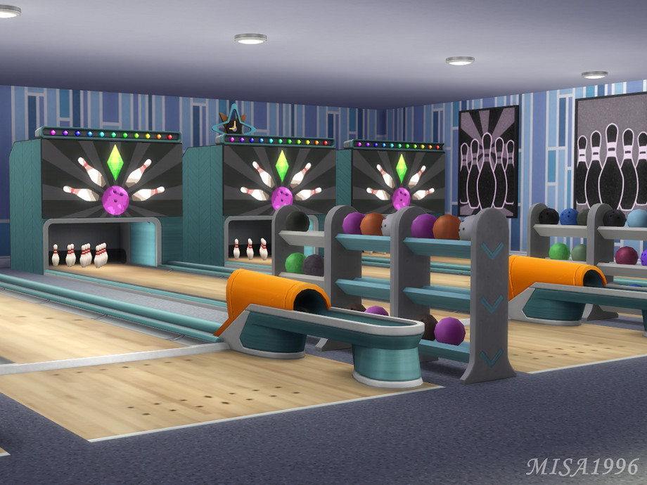 Karaoke and bowling bar in one building. Have a great fun with your sims.