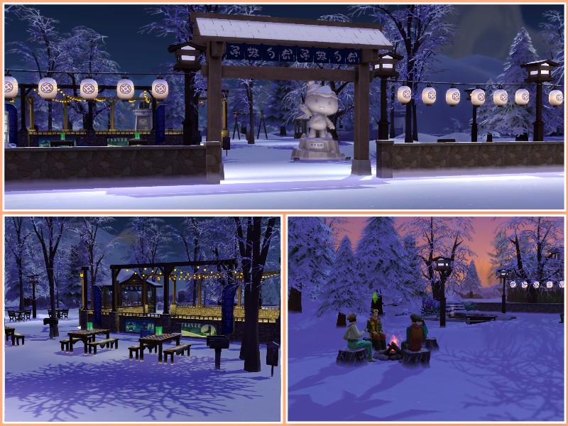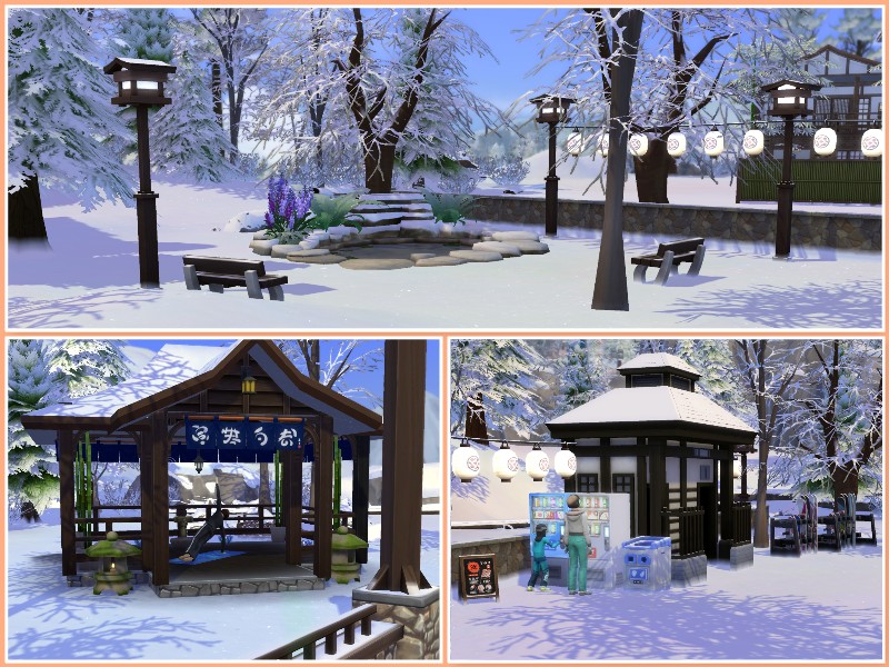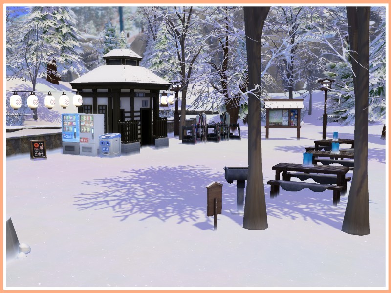 Because going to the mountains it s not only taking the slopes, the facilities of the Kiyomatsu Park will make an unforgettable day for your sims at Komorebi Mountain.