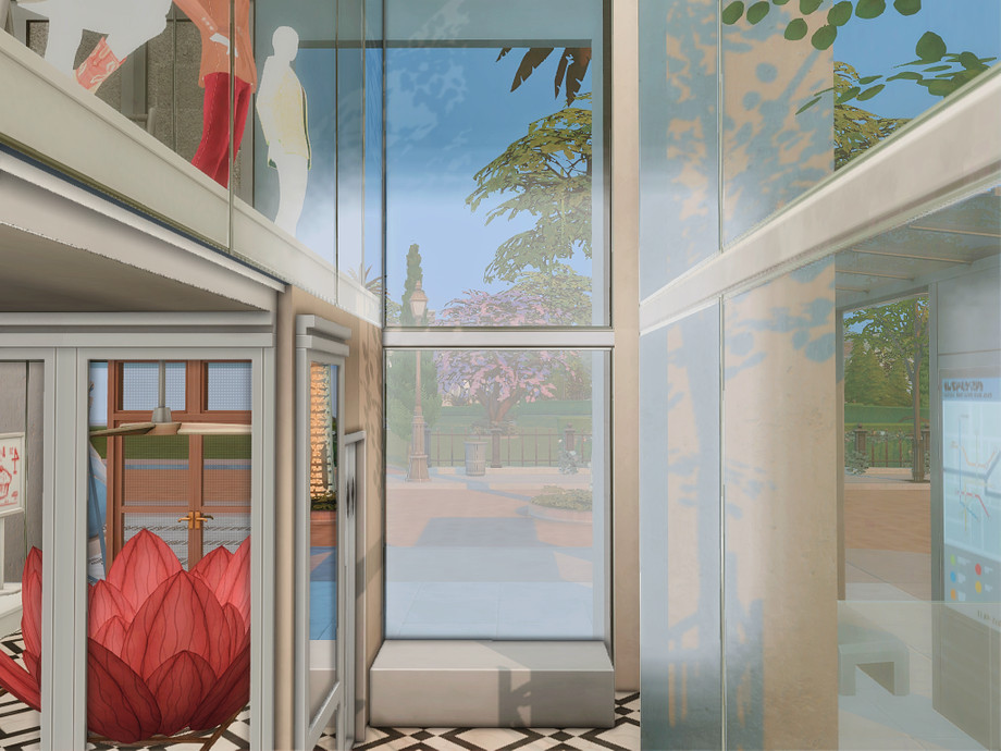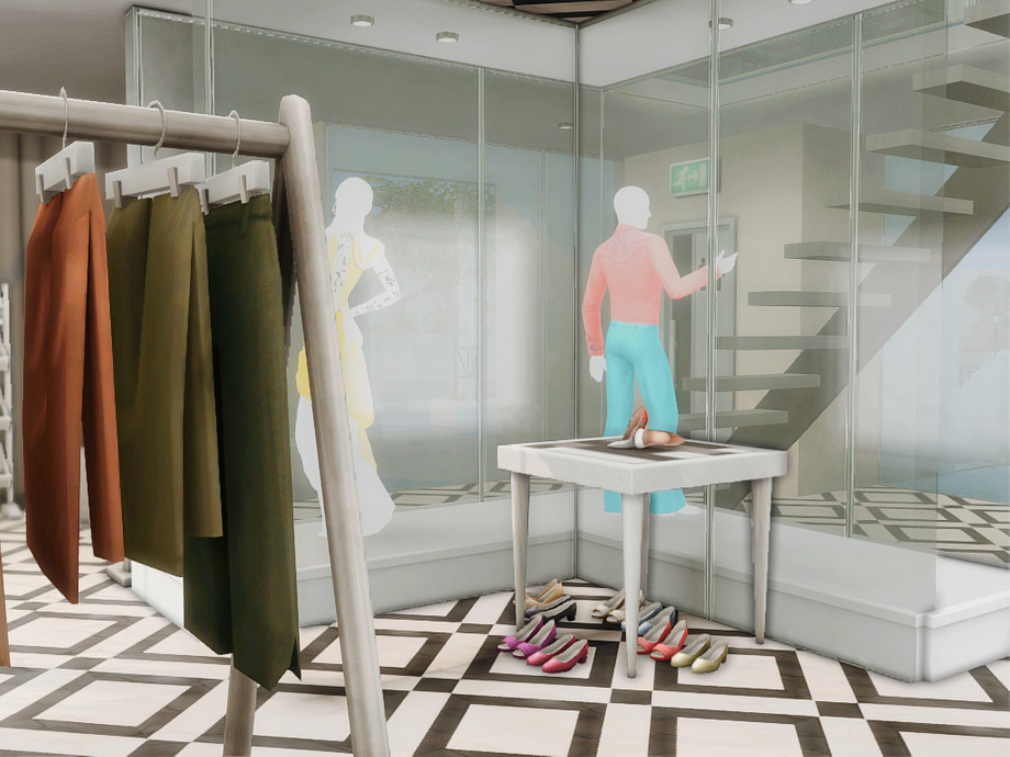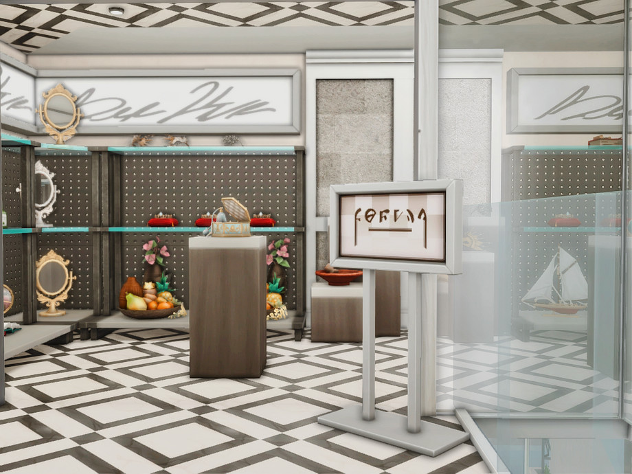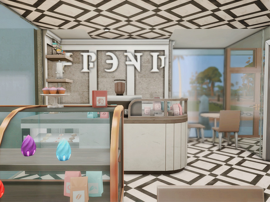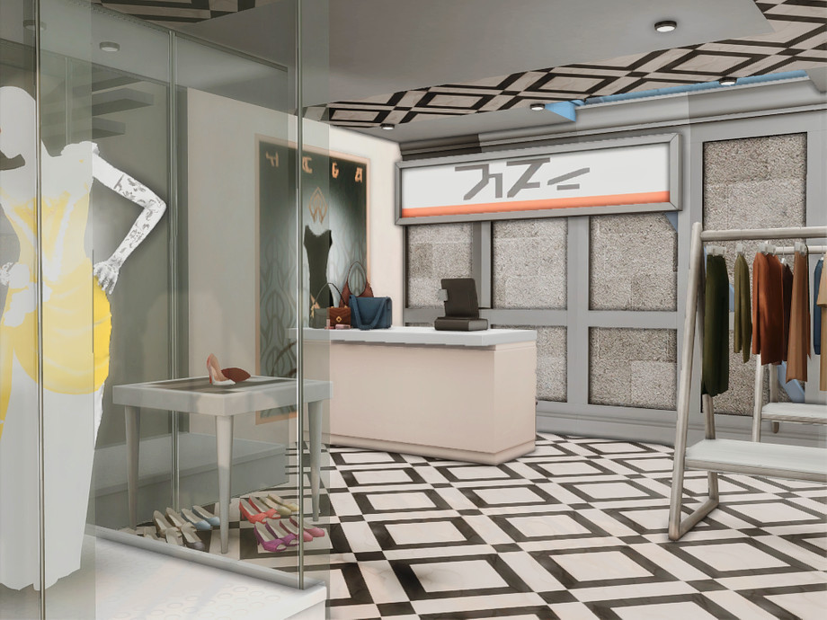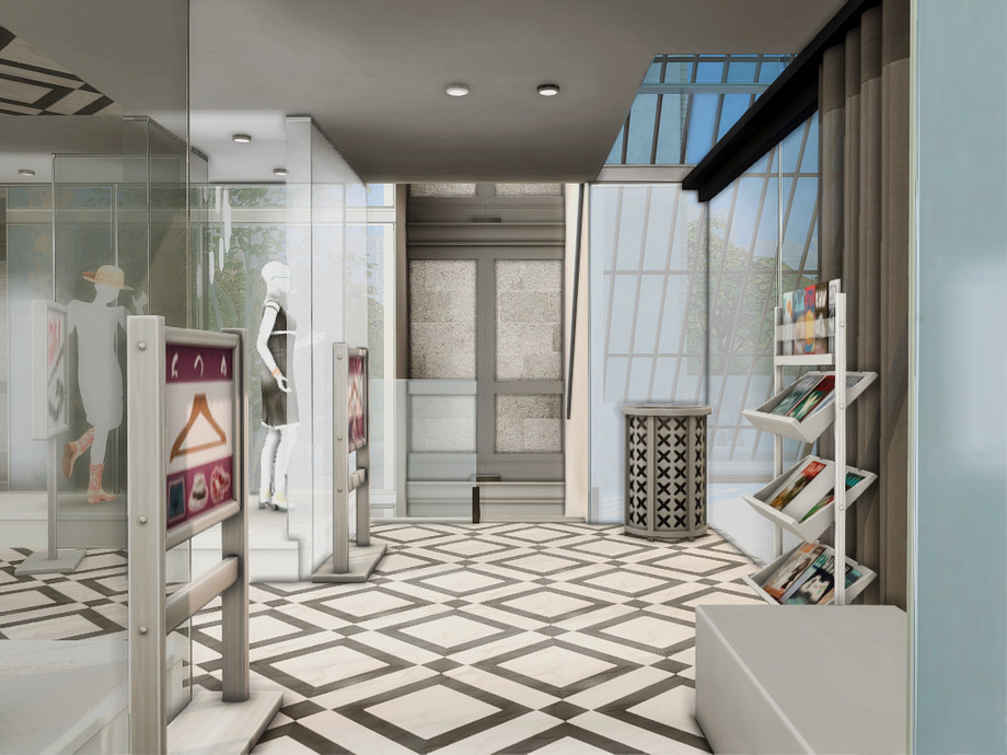 A modern retail concept store designed for stylish gameplay in The Sims 4. This two-level build features two separate boutiques: one dedicated to fashion and clothing, the other offering luxury items such as perfumes, crowns, and elegant home decor. The venue also includes a cozy coffee bar, creating a social space where Sims can shop, relax, and meet friends.