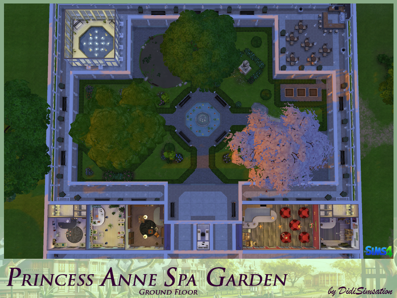 A boutique, a flower shop, a bookstore, a small cafe, a little gallery, the children's playground, a fishing pond, a outdoor diner and the drinking hall with the geysers