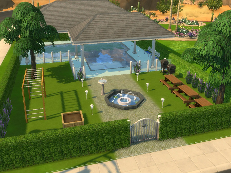 This community lot is for fun and relaxing, featuring a public pool for everyone who want come and have fun. Around the pool is a bench for sitting and relaxing, and of course barbecue. On the middle is fountain decoration. I hope you will enjoy!