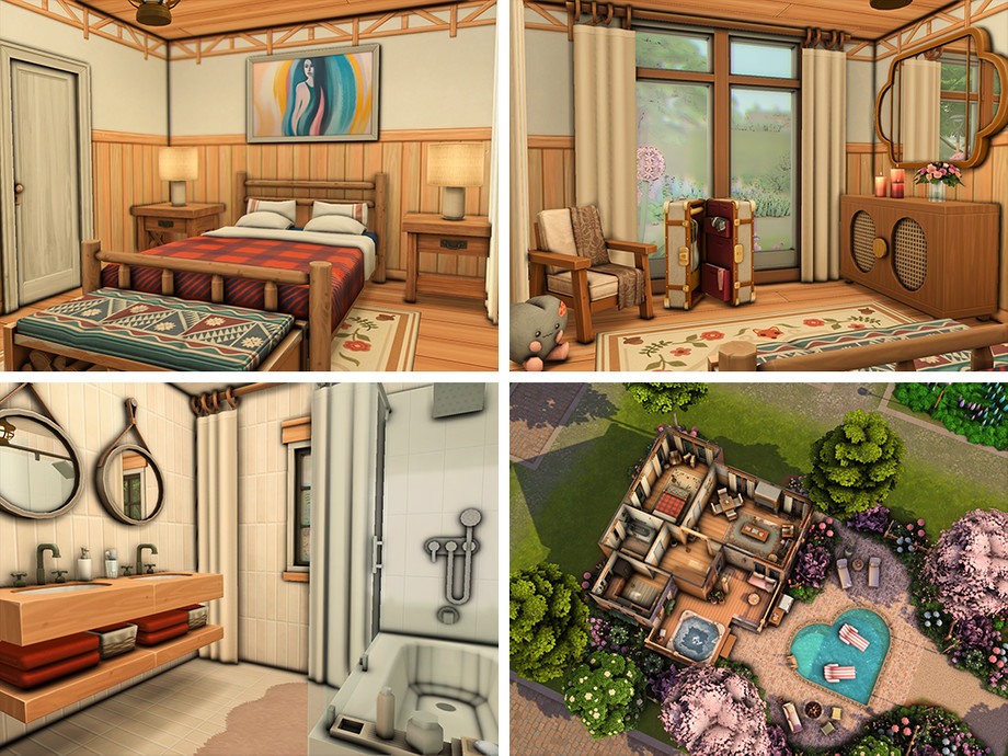 Sweetheart Cabin is a cozy Valentine's Day cabin with a heart shaped pool, pink flowers everywhere, and a warm, relaxed vibe. I imagined it as a little weekend getaway for your sims and had so much fun building it. Hope you'll enjoy! x