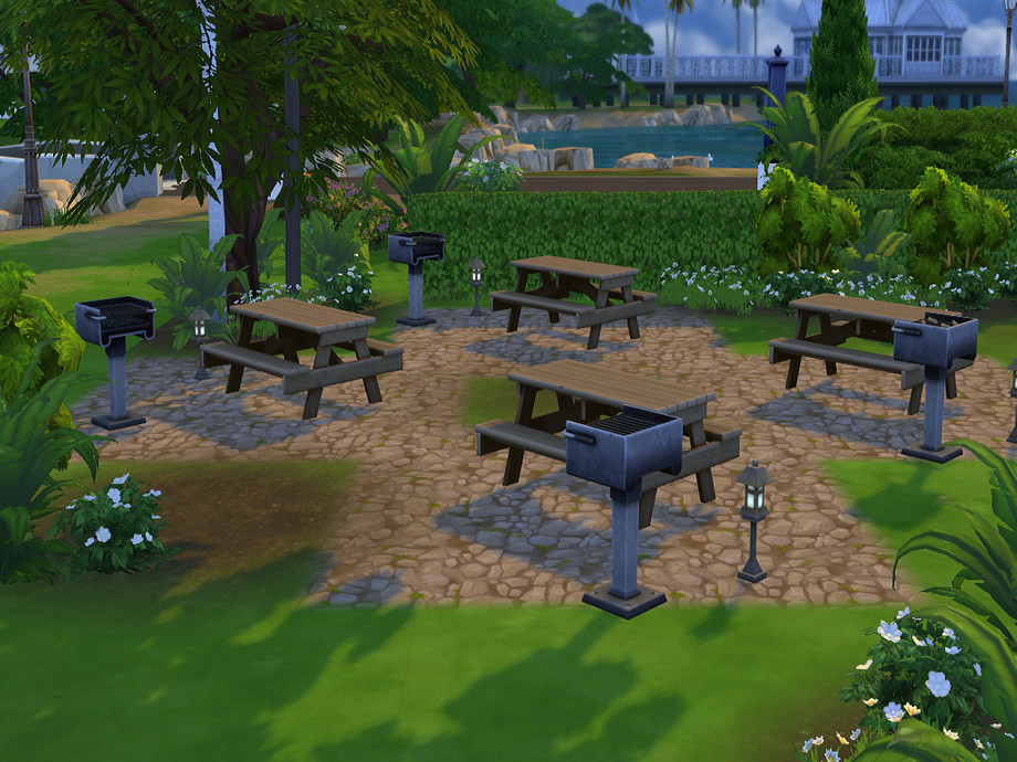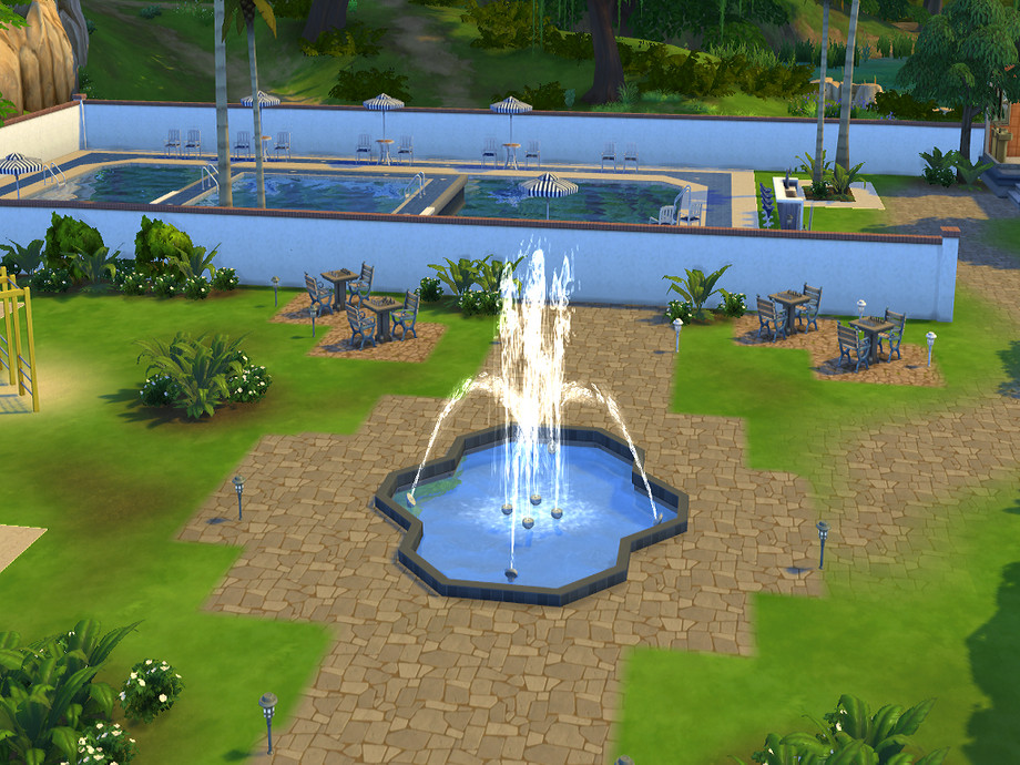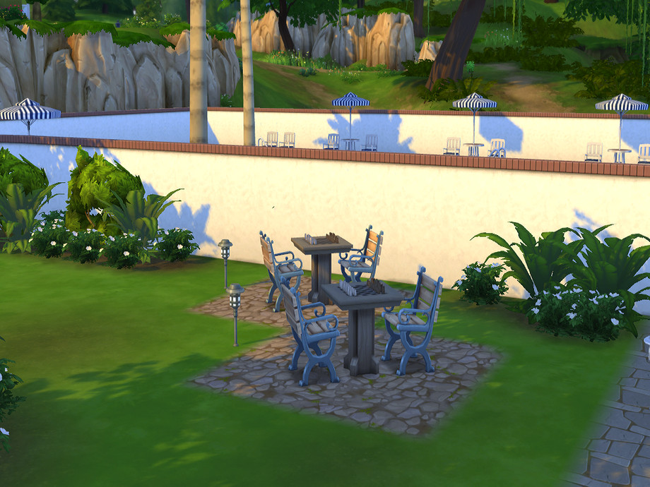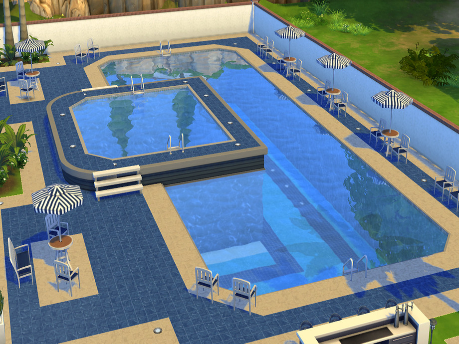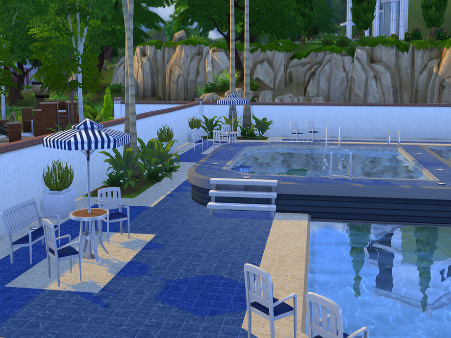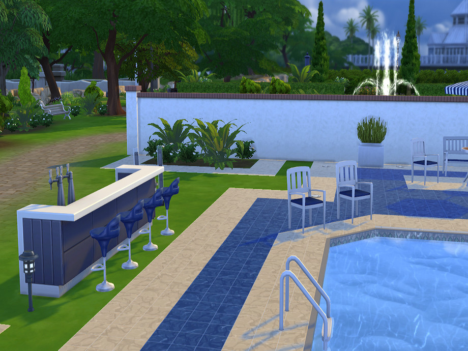 This is a beautiful place where yours sims can play chess, make a BBQ, swimming in two pools, or have a drink with friends listening good music.