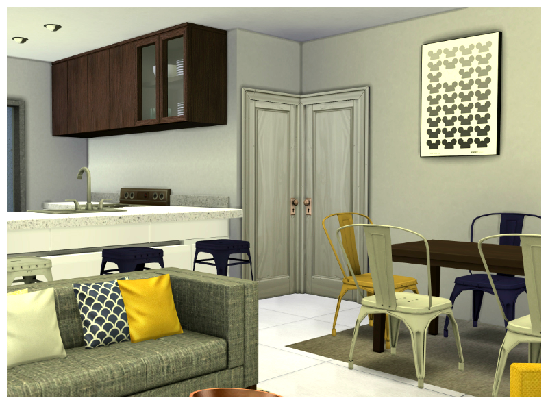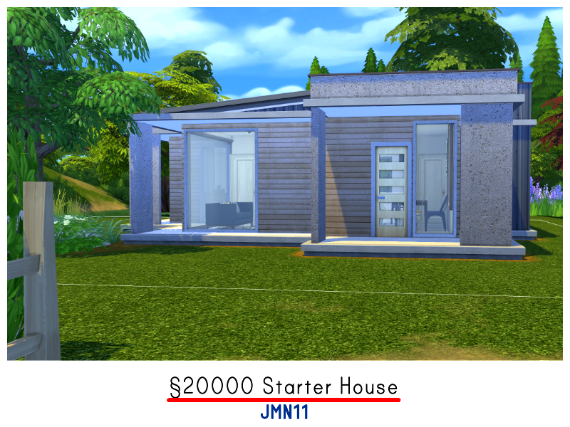 A modern starter house with a value of 20000 simoleons. The house has 2 bedrooms and an open plan area with living room, dining area and kitchen. Hope you like it and thank you for downloading :)