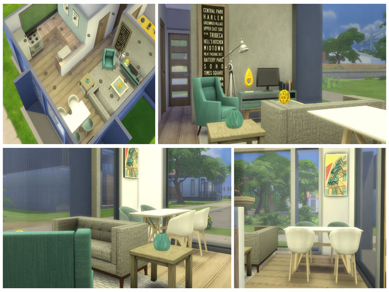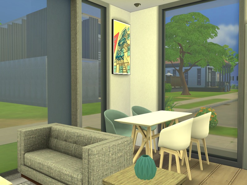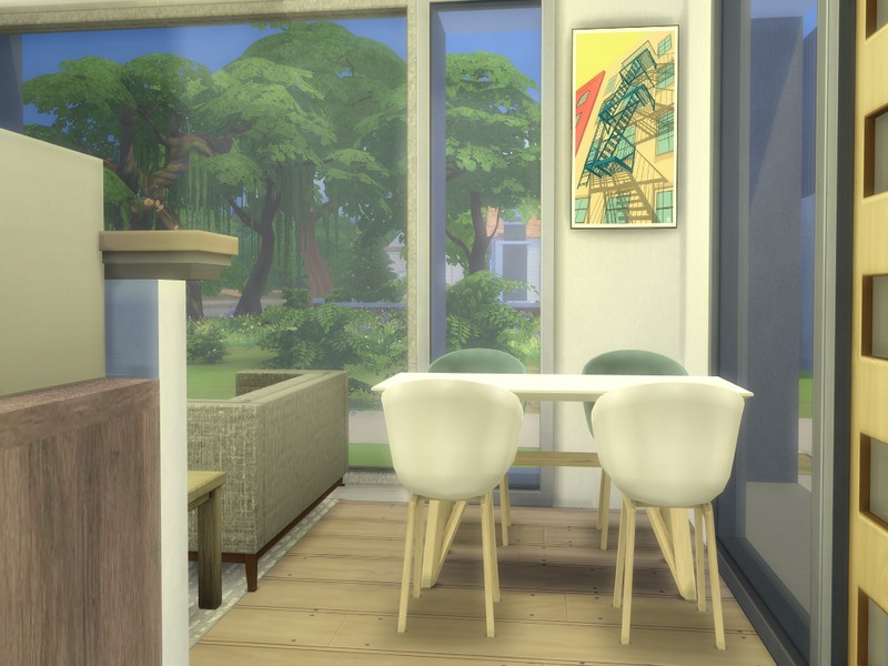 A modern starter house with a value of 21000 simoleons. The house has 2 bedrooms and an open plan area with living room, dining area and kitchen. Hope you like it and thank you for downloading :)
