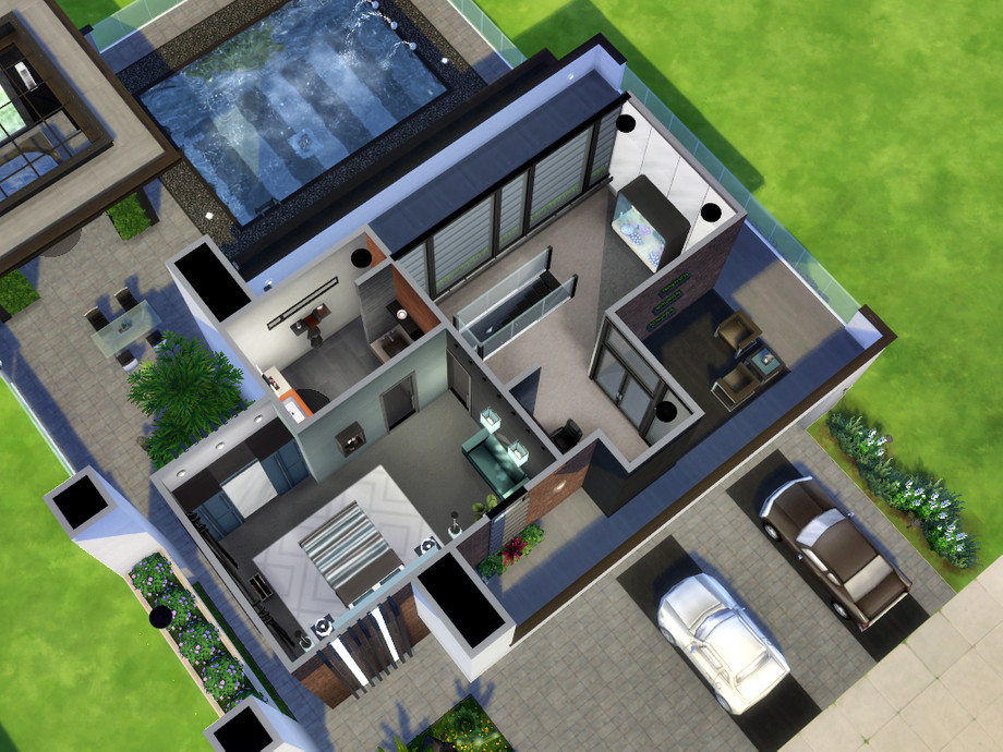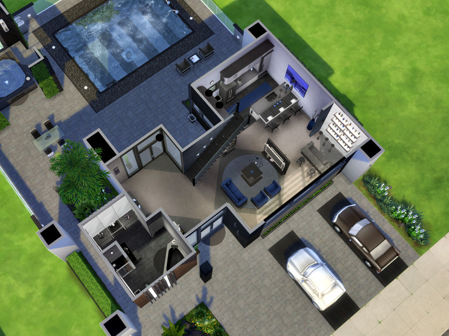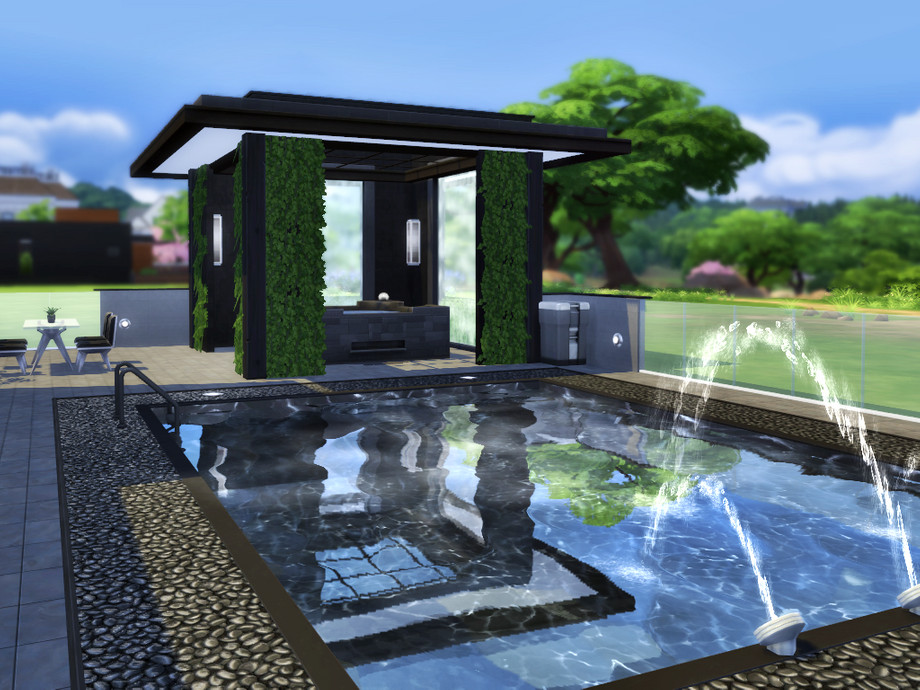 This is Adonis! A luxurious and cozy home for a single sim or just a couple built on a 30x20 lot and located in Newcrest. On the first floor, there's a social bathroom, living area with kitchen, dining and a comfortable TV room with fireplace and a small bar. Upstairs, there's a studying area and a couple bedroom with private full bath. Also, it has an amazing backyard with swimming pool and a modern gazebo with hot tub.