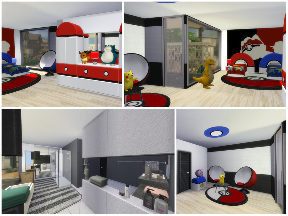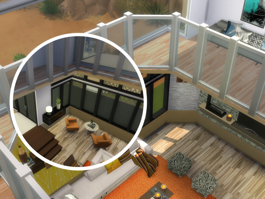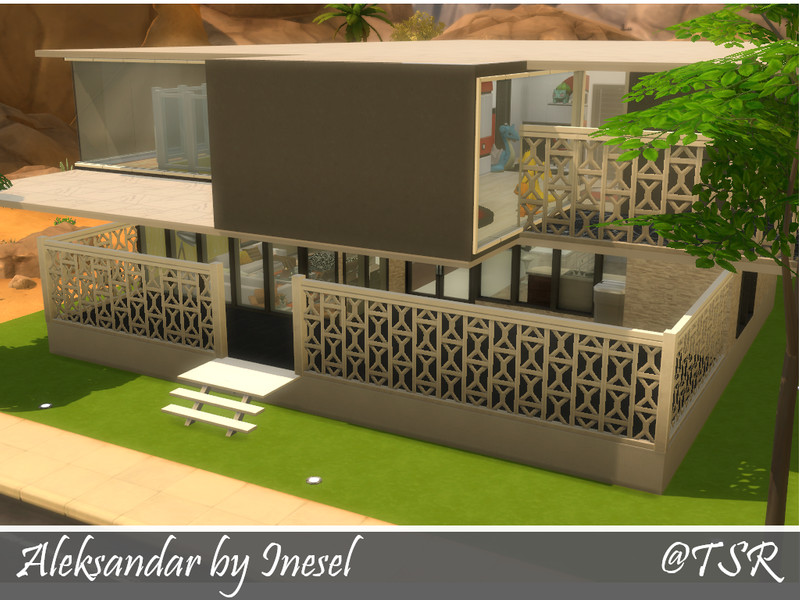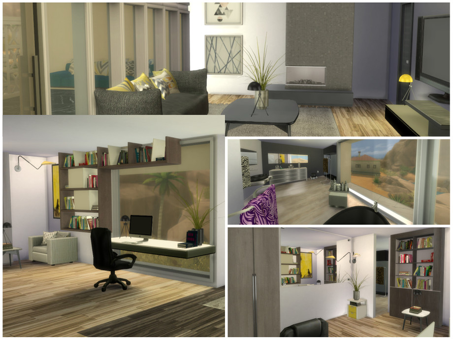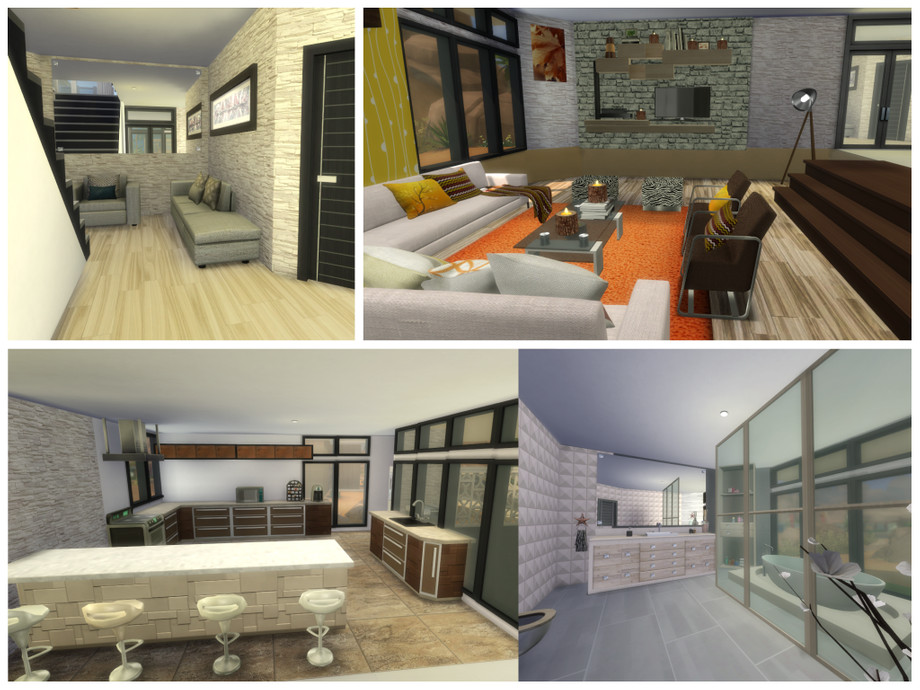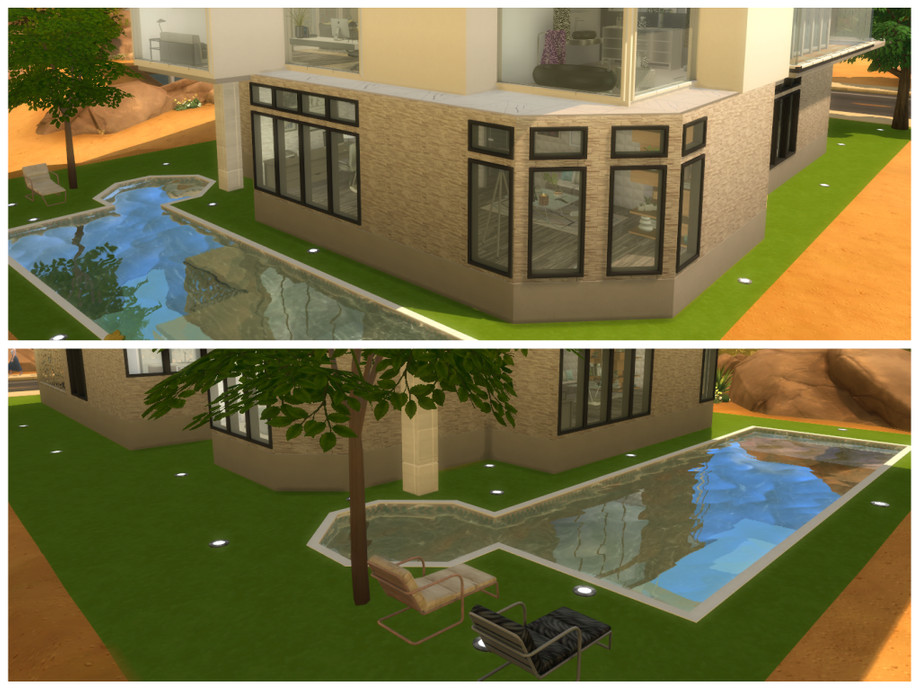 New modern house for your simmies! A living room, kitchen, bathroom and study can be found on the main level. On the basement there's a home theater/gaming room. On the upper floor there is the master bedroom and the kids' bedroom, each with their own bathroom. A lot of balconies and beautiful views. The house also features a pool and a poolside lounge area.
