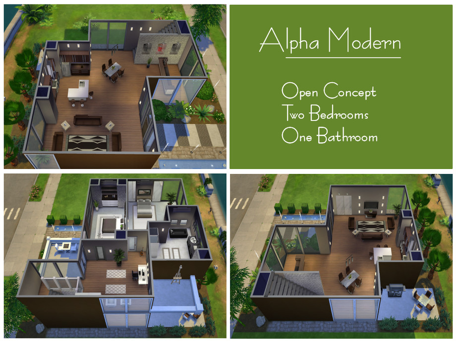 Alpha Modern is a small yet spacious home with open concept living on the main floor, including Living, Kitchen, Dining and Bar. On the 2nd floor you'll find an office/library, master bedroom, guest bedroom and bathroom. Outdoors has a BBQ and eating area.