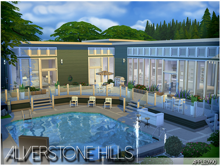 Alverstone Hills welcomes the new addition of pools, and with the pristine pool set on the lower level of the home it creates a blissful and serene atmosphere where Sims are welcome to swim and splash about. The home is designed around nature and raw materials, incorporating natural stone, stacked stone, woods and polished concrete to give a very industrial and modern feel. The outdoors and gardens have been fantastically landscaped and architecturally designed so you don't have to do a thing.