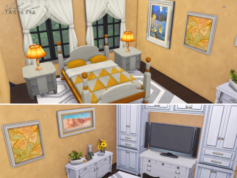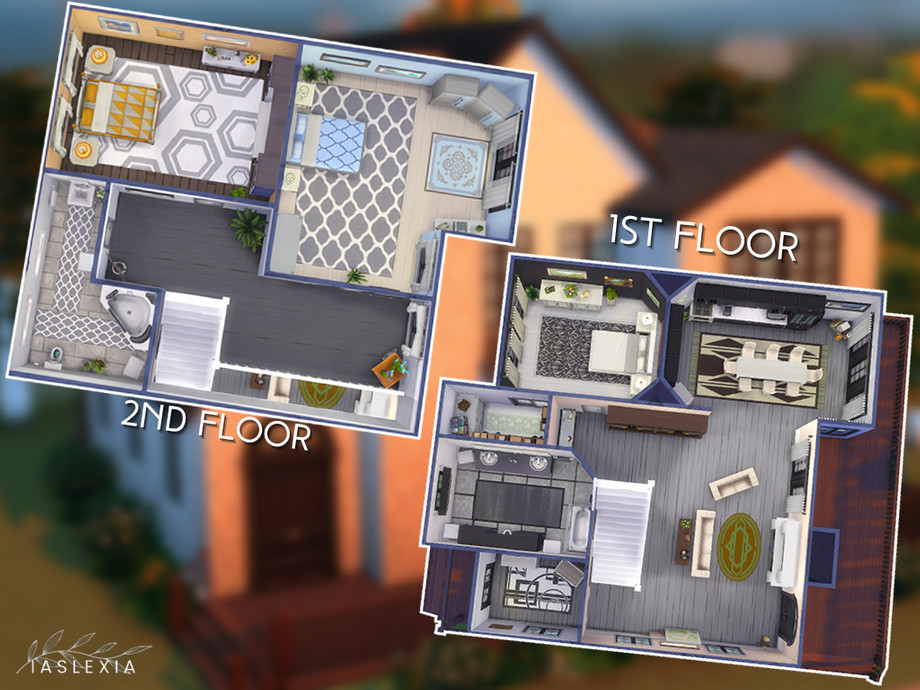 A cozy house surrounded by trees and plants! Perfect for up to 6 sims! It has a spacious kitchen&livingroom, 3 bedrooms and 2 bathrooms. A small back porch and a huge front one.